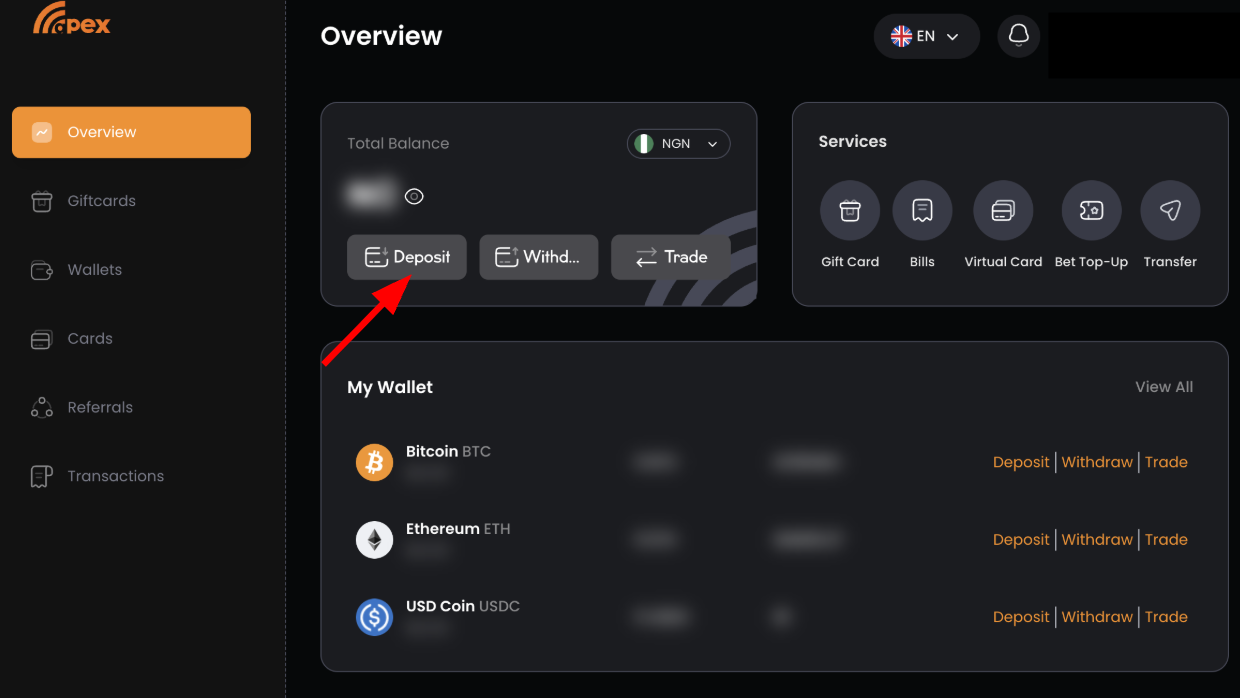 On your dashboard, locate the “Deposit” option